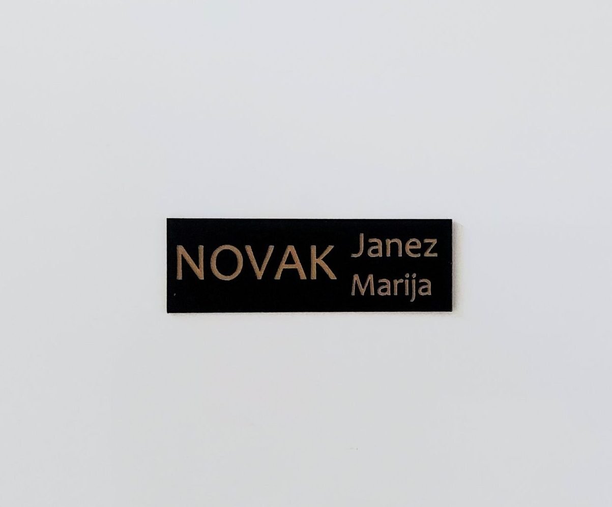 Izdelava napisov oz. imenskih tablic za poštne nabiralnike. Spodaj vpišite zahtevane podatke, ki bodo vgravirani na tablici in obkljukajte želeno izvedbo in barvno kombinacijo.